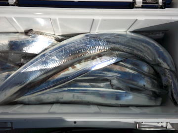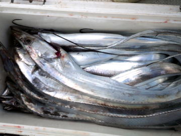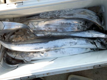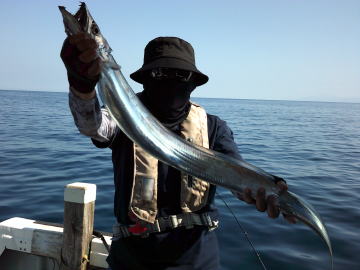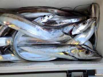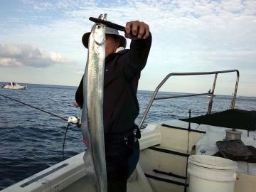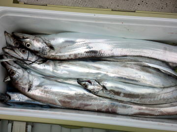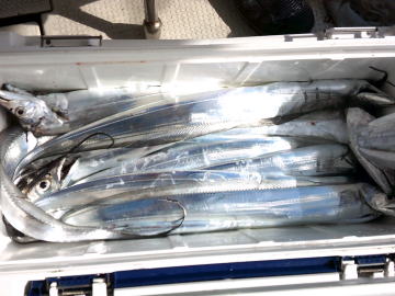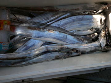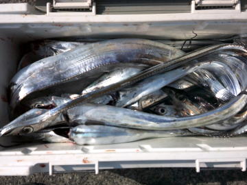 | 9月30日(火) 今日も近場タチウオです。 初めは良型が上がりましたが 潮が緩んで小型が多くなりました。 数はマズマズ。トップ30匹 |