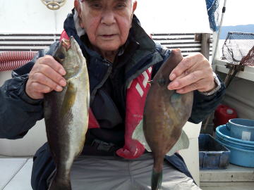 | 11月22日(土) 久しぶりに良い天気でした。 アジが良く釣れました。 ウマズラも釣れました。 イサキも釣れました。 |