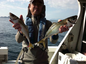 | 月3回目から料金7,000円割引 遠征イサキ五目 カゴ60号15,000円 (撒き餌込み) (3人から出船) 遠征タチウオ テンヤ60号 14,000円 (3人から出船) メバル オモリ25~30号 12,000円 (2人から出船) アジ&ウマズラ ドンブリ30~40号 13,000円 (撒き餌込み 2人から出船) 出船 6;30 (潮により変更有) |