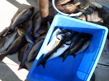 | 6月15日(土) 今日はアジの時間が長く続きました。 潮が止まったらやっぱり釣れません。 |