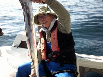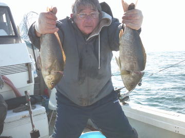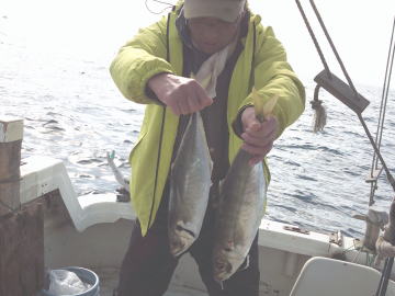 | 3月2日(日) 急遽大分の僚船とアマダイ&イトヨリダイに 初めて挑戦しました。アマダイは釣れませんでしたが イトヨリダイは釣れました。外にマダイ・カサゴが 釣れました。この釣りは根掛かりしないから誰でも 楽しめます。但しアマダイは穴から餌を追いますから 釣り方に一工夫がいるようです。勉強します。 |